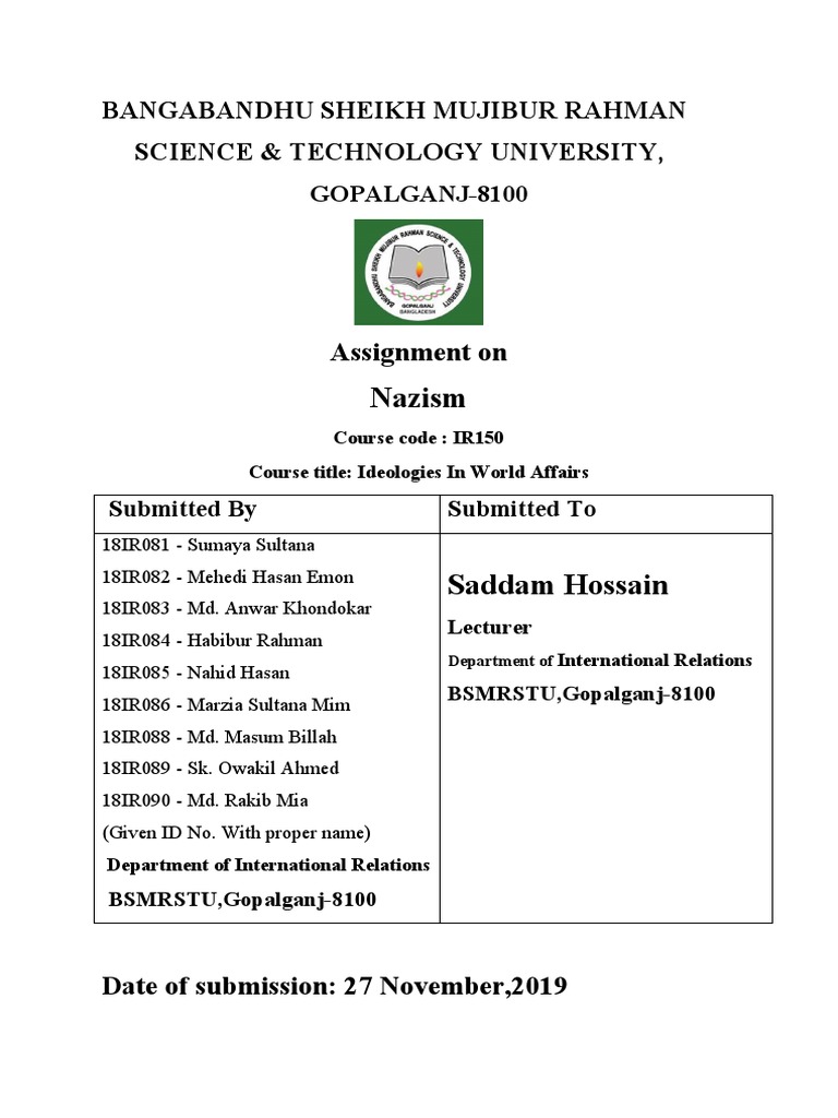 Complete all of the details below and sign. Bangabandhu Sheikh Mujibur Rahman Science and Technology University BSMRSTU Admission A Unit Seat Plan. Being a university student you must be aware of the importance of a perfect assignment cover sheet or assignment cover page.