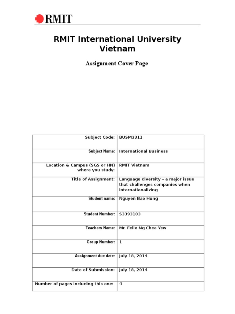 All academic and business writing simply has to have absolutely perfect grammar punctuation Rmit Essay Cover Page spelling formatting and composition. Our experts proofread and edit your project with a Rmit Essay Cover Page detailed eye and with complete knowledge of all writing and style conventions. Tuan Giang Quang Group Number.